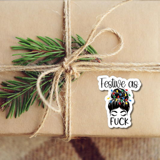 Funny Festive as Fuck woman matte or glossy vinyl sticker⎪gift for Christmas⎪ laptop sticker⎪ phone sticker