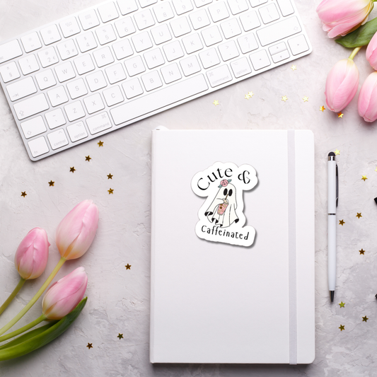 Cute and Caffeinated Funny Ghost Matte or Glossy vinyl sticker⎪gift for book lover⎪ laptop sticker ⎪ phone sticker