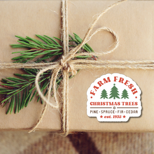 Farm Fresh Christmas Trees Glossy or Matte vinyl sticker⎪ Vintage Christmas gift for book lover⎪ laptop sticker ⎪ phone sticker