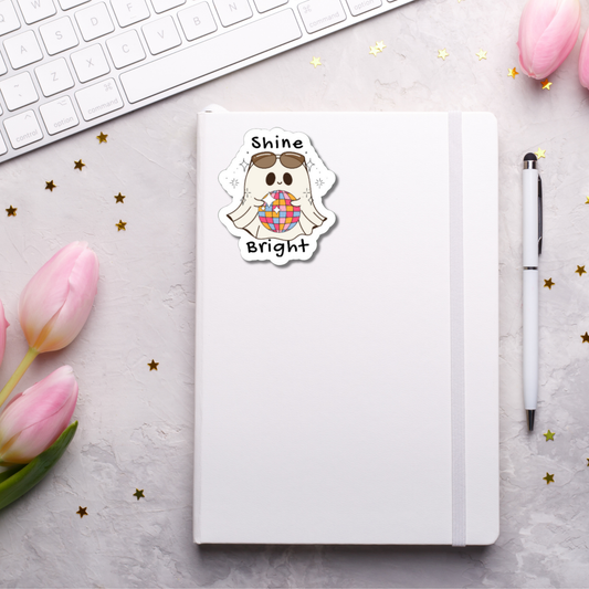 Cute, funny Ghost, Disco ball Shine Bright matte or glossy vinyl sticker ⎪ gift for book lover⎪ laptop sticker ⎪ phone sticker positivity
