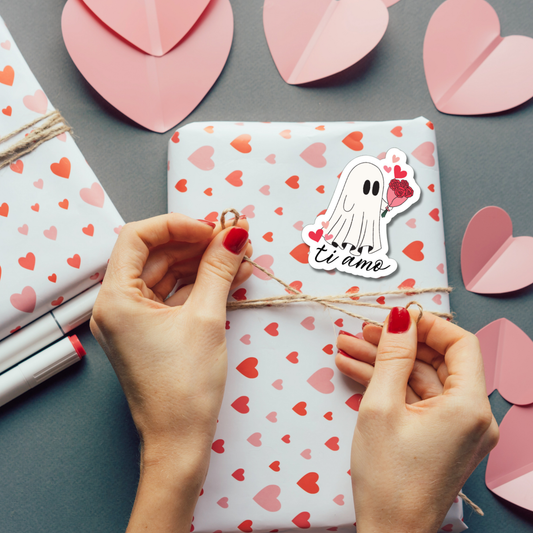 Cute, funny Ghost Ti Amo matte or glossy vinyl sticker for your Italian lover ⎜Phone sticker ⎜laptop sticker