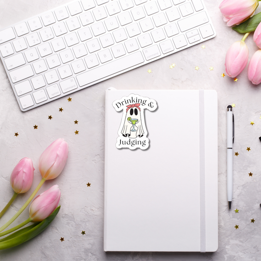 Drinking and Judging Funny Ghost Matte or Glossy vinyl sticker⎪gift for book lover⎪ laptop sticker ⎪ phone sticker