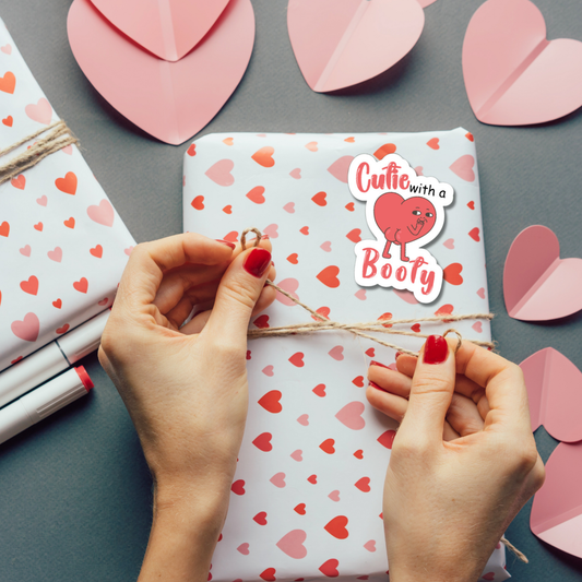Cute, funny Cutie with a Booty matte or glossy vinyl sticker ⎪ Valentine's Day gift for book lover⎪ laptop sticker ⎪ phone sticker