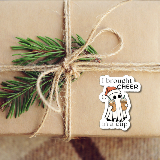 I Brought Cheer in a Cup ghost matte or glossy vinyl sticker ⎜ Phone sticker ⎜ Laptop sticker ⎜Funny Holiday stocking stuffer